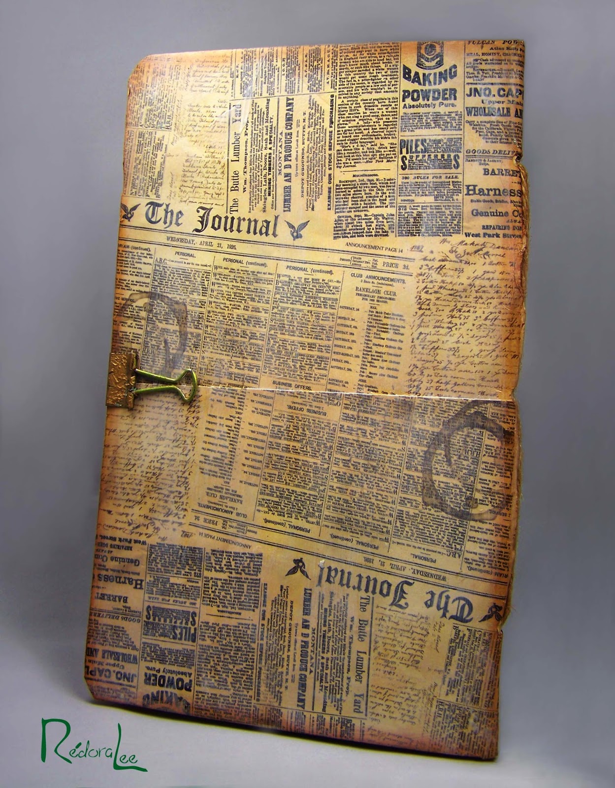 For my closer, decided to use a binder clip. The clip is also used to hold the pages while the book was in use. I used Rub'n Buff to change the color and give it an aged look!