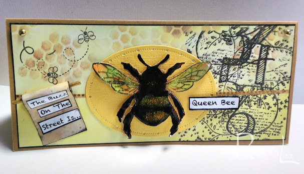 2. Gorgeous Queen bee card, love all the background stamps you used. Your diecut/fussy cut bee is fantastic, hugs, Lori m