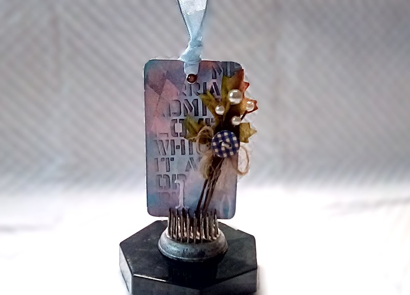 I had so much fun creating this little tag. I was reviewing a set of diamond/harlequin stencils and wanted to make a quick project video to accompany the review. I was unsure of where I was going with this, but I am pleased with the results!